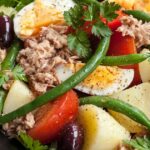 - Mondare gli asparagi, sbollentarli in acqua salata per 6-7 minuti, quindi scolarli e tagliarli a fettine nel senso della lunghezza.